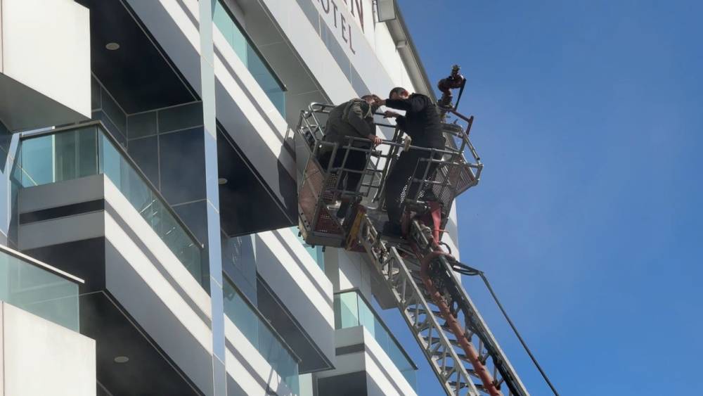 Otel yangınında mahsur kalan 8 kişi kurtarıldı
