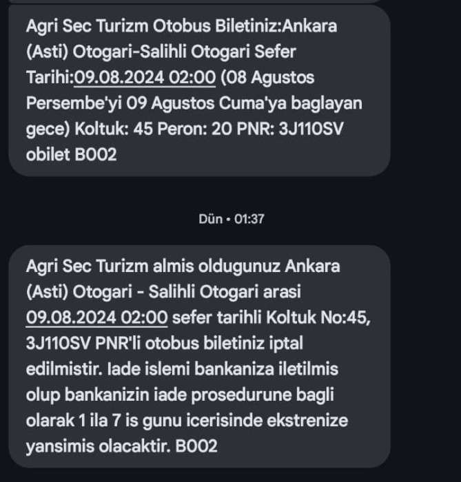 “BİLETİ İPTAL ETTİM VE BAŞKA BİR FİRMAYLA GİTME KARARI ALDIM”