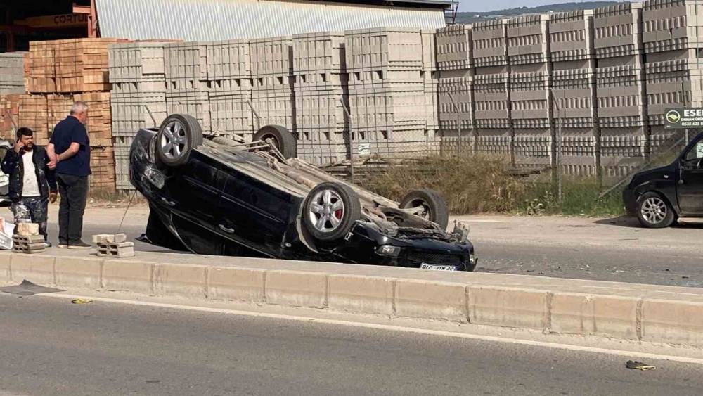 Otomobil refüje çarpıp, iki araca vurup ters döndü