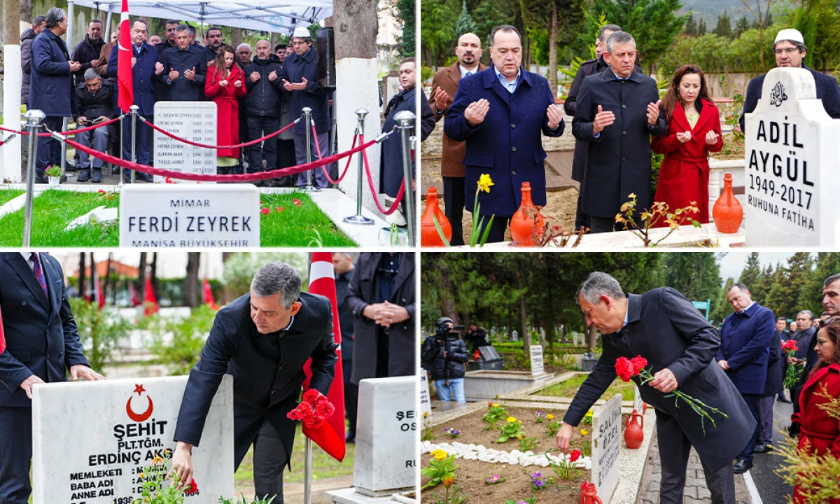 Özgür Özel, bayram sabahı ilk olarak aile büyüklerinin kabirlerini ziyaret etti. Ardından Manisa Büyükşehir Belediye Başkanı Ferdi Zeyrek ile kentin simge isimlerinden Manisa Tarzanı Ahmet Bedevi’nin mezarlarına giden CHP Lideri Özel, kabirlere karanfil bıraktı. Program kapsamında ayrıca 12 Eylül öncesinde hayatını kaybeden CHP İl Başkanı eczacı Mete Erdem’in kabri de ziyaret edildi. Özel, aynı mezarlıkta bulunan MHP İl Başkanı eczacı Cemil Çöllü ile eczacı Neşe Gülersoy’un kabirlerine de karanfil bırakarak anma gerçekleştirdi.