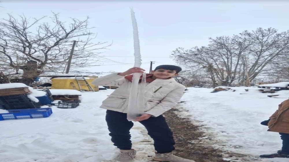 Elazığ’da hafta için kendini gösteren ve etkili olan kar yağışı yerini soğuk havaya bıraktı. Geceleri termometrelere eksilere düşerken buzlanma meydana geldi. Palu ilçesinde 2 çocuk oluşan buz sarkıtlarını eline alarak fotoğraf çektirdi. Buz sarkıtları görenleri hayrete düşürdü.
