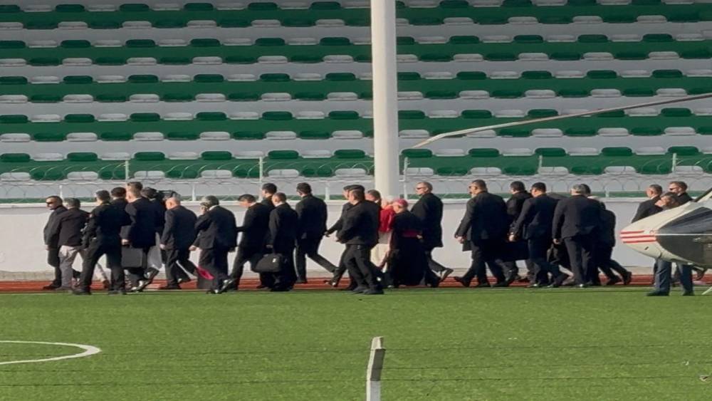 Birinci İznik Konsili’nin 1700’üncü yıl dönümü anma etkinlikleri katılmak üzere Atatürk Havalimanı’ndan helikopterle hareket eden Papa 14. Leon, 15.10 sularında İznik’e geldi. Papa’yı taşıyan helikopter ilçe stadyumuna indi.