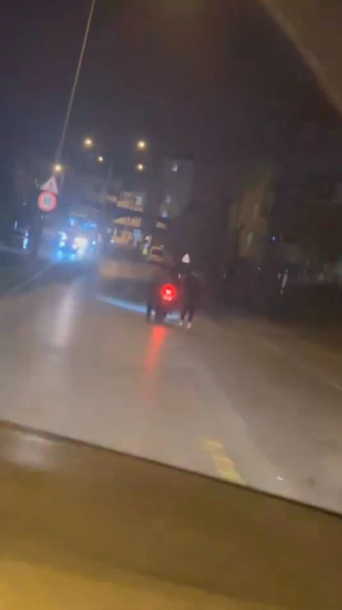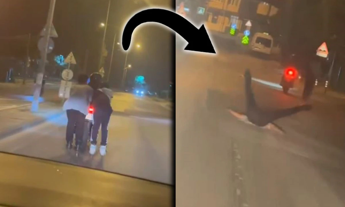Edinilen bilgiye göre, 2 paten sürücüsü cadde üzerinde bir motosiklete tutunarak ilerlemeye çalıştı. Metrelerce giden patencilerin tehlikeli yolculuğunu kayıt altına almaya çalışan bir vatandaş kaza anını görüntüledi. Paten kullanıcılarından birisi dengesini kaybederek cadde üzerinde yuvarlanmaya başladı. Arkadan gelen otomobilin altında kalmaktan son anda kurtuldu. Görüntülerde paten sürücüsünün savrularak yuvarlandığı görüldü. (İHA)