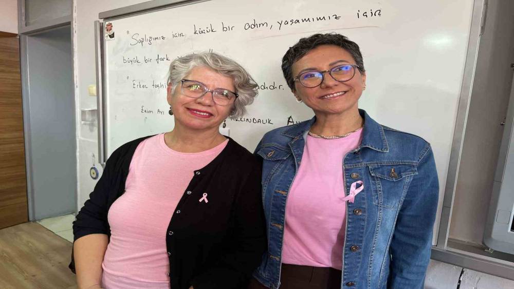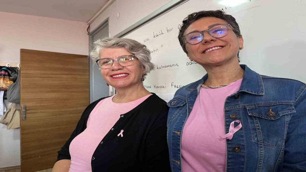 İzmir’in Karabağlar ilçesindeki Fevzi Özakat Anadolu Lisesi öğretmenleri, Kanser Farkındalık Haftası kapsamında iki meslektaşlarına moral vermek ve farkındalık oluşturmak amacıyla pembe giyinip pembe kurdele taktı. Okulda görev yapan öğretmenlerden Nevin Vural, 10 yıl önce meme kanseri tanısı aldıktan sonra uzun süren tedavi sürecinin ardından hastalığı yenerek sağlığına kavuştu. Bir diğer öğretmen Serap Şimşek ise geçtiğimiz yıl meme kanseri teşhisi konulmasının ardından tedaviye başladı. Tedavisinin olumlu seyretmesiyle bir süre önce yeniden öğrencileriyle buluşan öğretmen, mesleğine kaldığı yerden devam ediyor.