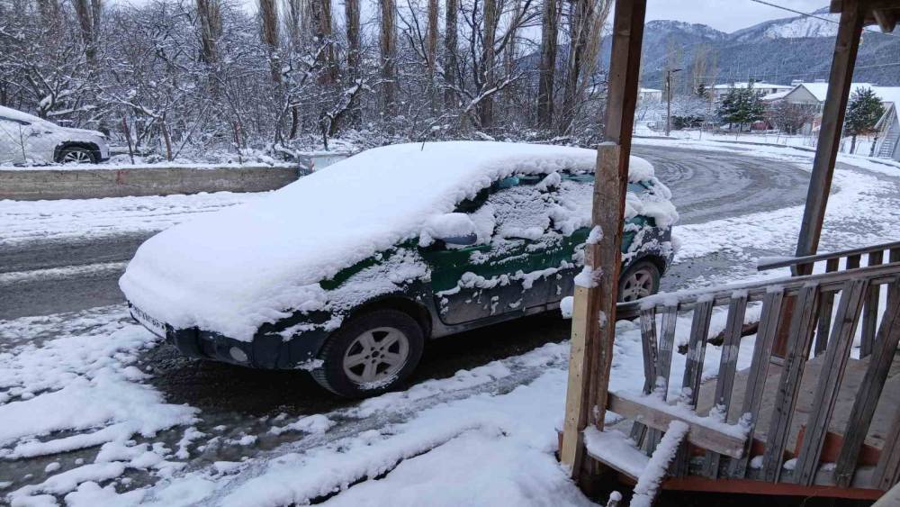 Kar yağışı ile birlikte ilçe merkezinde ulaşımda da yer yer aksamalar yaşandı.