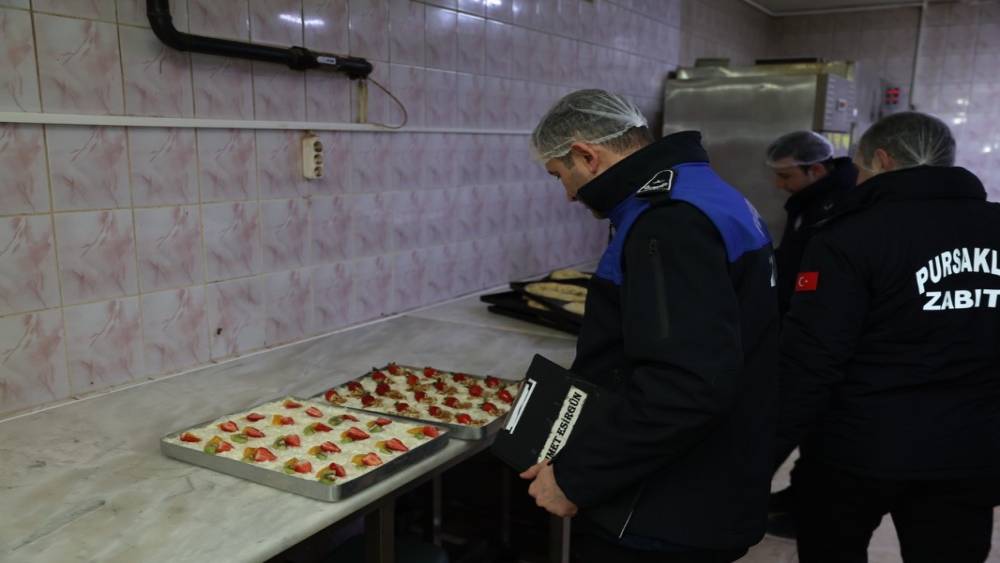 Pursaklar Belediyesi zabıta ekipleri Ramazan ayının manevi atmosferine uygun, güvenli ve sağlıklı bir alışveriş ortamı oluşturmak amacıyla ilçe genelinde yoğun denetim gerçekleştiriyor. Özellikle iftar ve sahur saatleri öncesinde yoğunluk yaşanan fırınlar, pastaneler, marketler, kasaplar, manavlar, tatlı üretim ve satış noktaları ile toplu tüketim alanlarında kapsamlı denetimler yapılıyor. Denetimlerde ürünlerin son kullanma tarihleri saklama ve muhafaza şartları, iş yeri ruhsatları, fiyat etiketi ve kasa fiyatı uyumu, çalışan personelin hijyen kurallarına uygunluğu, Ramazan pidesi gramaj kontrolleri tek tek kontrol edilerek mevzuata uygunluk sağlanıyor.