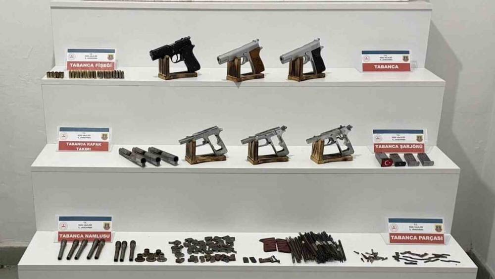 İl Jandarma Komutanlığı ekiplerince ’ateşli silahlar ve bıçaklar ile diğer aletler hakkında kanuna muhalefet’ suçuna yönelik yürütülen çalışmalar çerçevesinde Ardeşen ilçesinde ikamet eden A.A. (35), M.A. (30) ve H.A. (50) isimli şahıslara ait ev ve eklentilerde arama yapıldı. Aramalarda 3 adet tabanca, 3 adet tabanca gövdesi, 3 adet tabanca üst kapağı, 8 adet tabanca namlusu, 4 adet şarjör, çok sayıda tabanca yayı, tetik parçası, horoz, 19 adet iğne, namlu yüzüğü ve yan tutucu parça ile kovanlar, elektrikli aletler ve 3 adet cep telefonu bulundu. Ele geçirilen silah atölyesi jandarma ekiplerince mühürlenirken şüpheli şahıslar adliyeye sevk edildi.