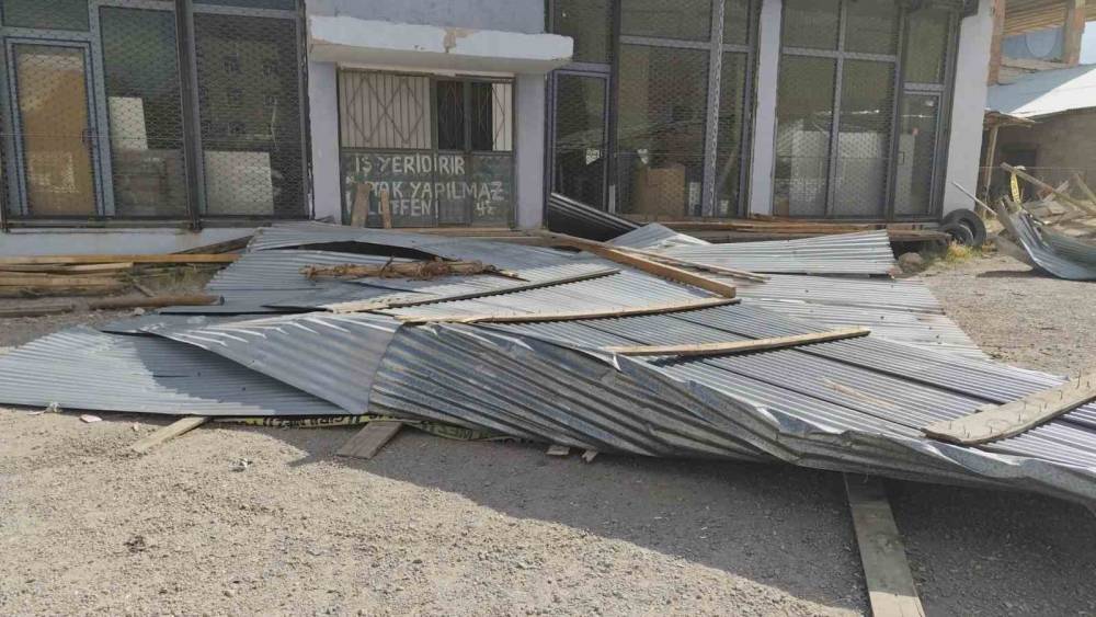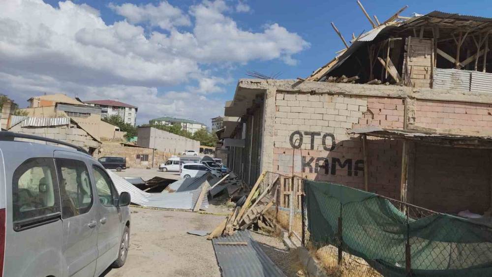Rüzgar çatıları uçurdu, 3 araç hasar gördü