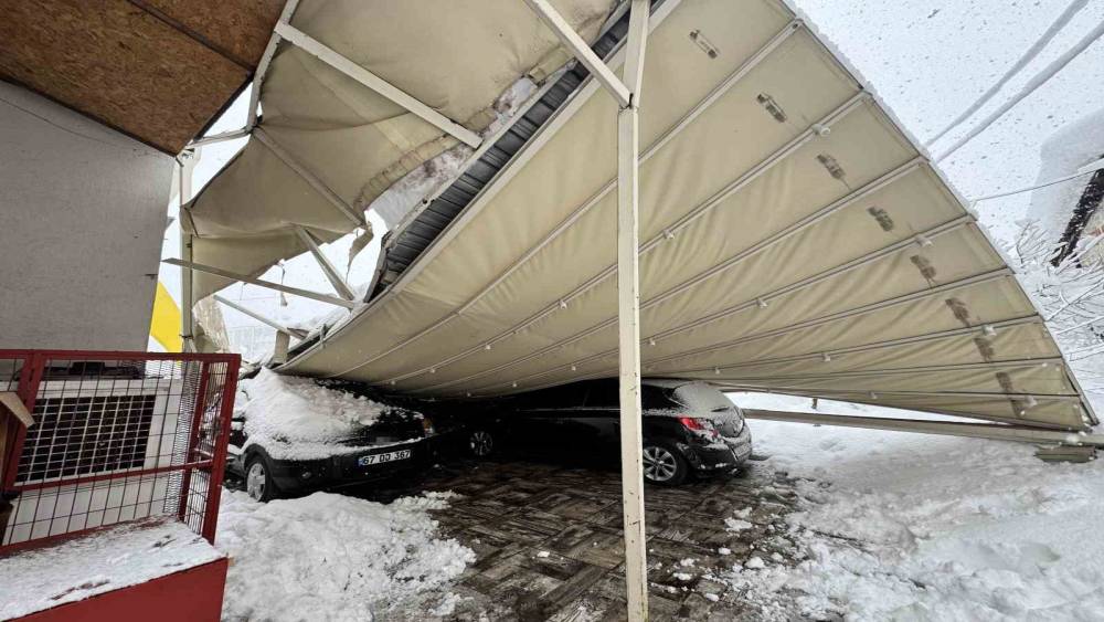 Karabük’ün Safranbolu ilçesinde kar ağırlığına dayanamayan bir garajın çökmesi sonucu 3 araç zarar gördü.