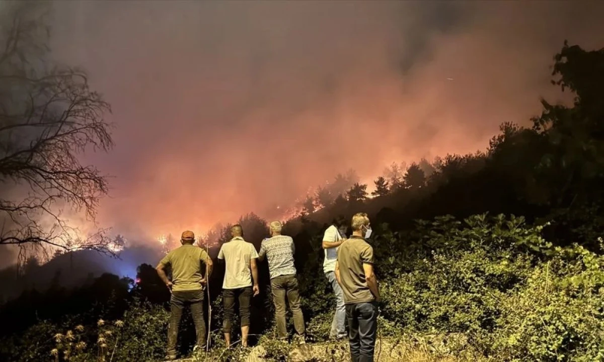 Bölgenin sarp yapısı nedeniyle iş makineleriyle yol açmaya çalışan ekipler, yangının ilerleyişini durdurmak için yoğun çaba sarf ediyor. Bu arada tahliye edilen köydeki bazı vatandaşlar, evdeki eşyalarını traktörlere yükleyerek güvenli bölgeye taşıyor. (Haber Merkezi)