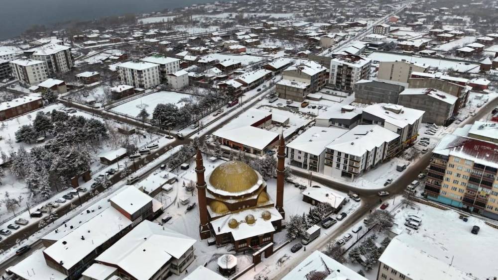 Kar yağışı sonrası beyaz örtüyle kaplanan Bitlis’in sakin şehir (Cittaslow) ünvanlı ilçesi Ahlat, havadan görüntülendi.Etkili olan kar yağışının ardından ilçe merkezi adeta beyaz bir tabloya bürünürken, ortaya çıkan kış manzarası izleyenleri kendine hayran bıraktı. Drone ile kaydedilen görüntülerde, Ahlat’ın yerleşim alanları, cadde ve sokakları ile çevresini saran doğal dokunun karla bütünleştiği anlar dikkat çekti.Tarihi dokusuyla bilinen ilçe, beyaz örtüyle birlikte görsel bir şölen sunarken, kış mevsiminin Ahlat’a kattığı estetik güzellikler havadan net bir şekilde görüntülendi. Farklı açılardan kaydedilen drone görüntülerinde, ilçe merkezinin kış manzarası kartpostallık görüntüler oluşturdu.