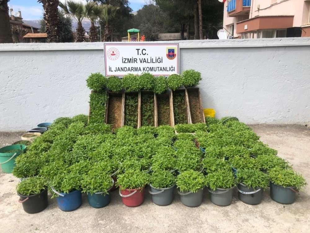 İzmir Kiraz’ın Çanakçı Mahallesi'nde, saksı ve boş arı kovanların içeresine 37 bin 450 kök kenevir ekimi yapan Y.B. adlı şahıs jandarma ekiplerince yakalandı.