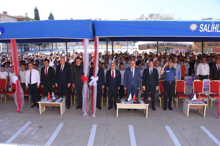 Atatürk Anıtı’na çelenk sunumu ile başlayan törenler, Milli Egemenlik Ortaokulu’nda devam etti. Saygı duruşunda bulunulması ve İstiklal Marşı’nın okunmasıyla başlayan programda, günün anlam ve önemini belirten konuşmayı İlçe Milli Eğitim Müdürü Mahmut Yenen yaptı. Törende konuşan Salihli Belediye Başkanı Zeki Kayda, “Yeni eğitim ve öğretim yılında, sevgili öğrencilerimize üstün başarılar, değerli öğretmenlerimize ve kıymetli velilerimize kolaylıklar dilerim. Yeni eğitim ve öğretim yılımız, Salihli’mize ve ülkemize hayırlı olsun” dedi.