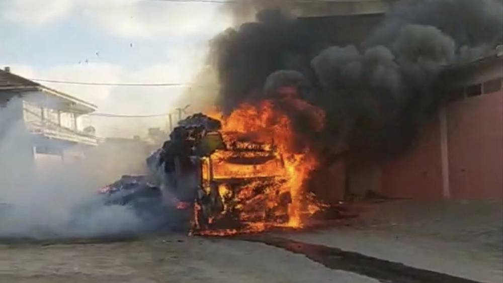 Saman yüklü tır yangında kül oldu