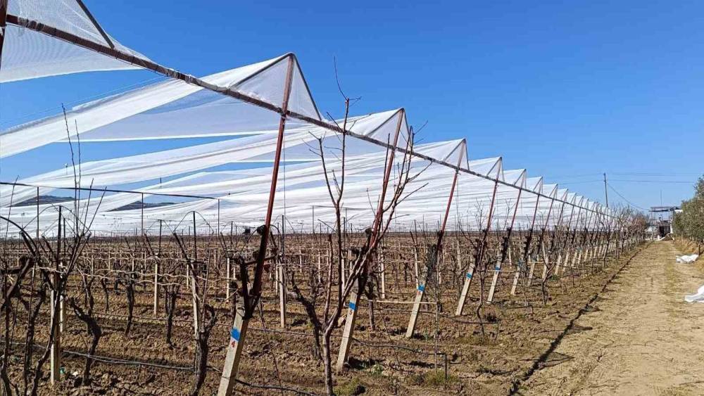 Üretici Yıldırım Helvacı, dolu file sisteminin devlet destekli krediyle kurulduğunu belirterek, "Dolu olayları bölgemizde genellikle Mart ayında başlar ve Temmuz ayına kadar devam eder. Bu nedenle bağlarımızı doluya karşı korumak için örtü sistemi kuruyoruz. Bazı üreticilerimiz hasat sonuna kadar bu örtüleri bağların üzerinde bırakarak önlemlerini sürdürüyor." dedi.