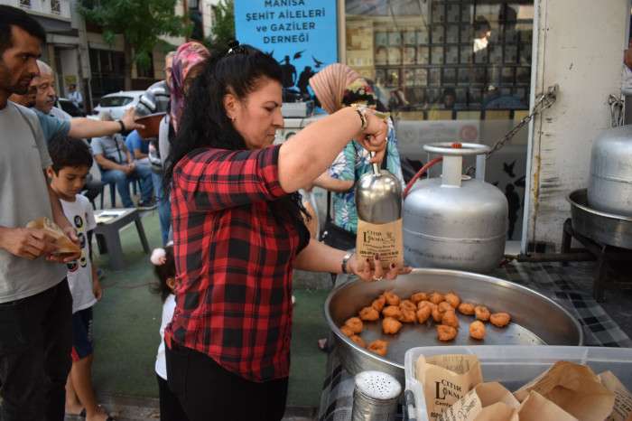 Manisa Şehit Aileleri ve Gaziler Derneği 19 Eylül Gaziler Günü nedeniyle şehitlerimiz ve hayatını kaybeden gaziler için bin 500 kişilik lokma hayrı gerçekleştirdi. Hayırsever Ayşe Yıldırım'ın desteğiyla hazırlanan programda Mevlid-i Şerif okundu, dualar edildi.