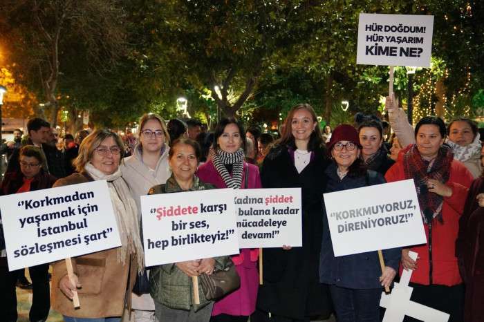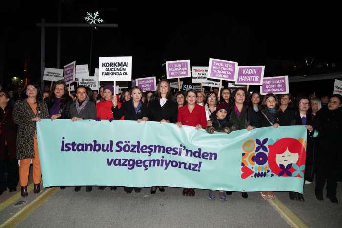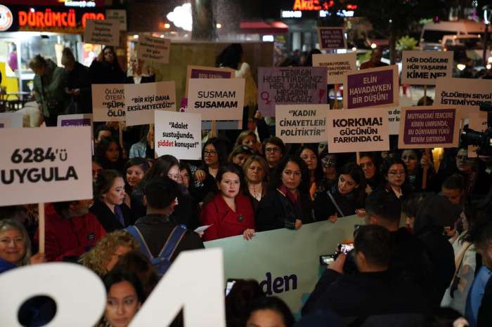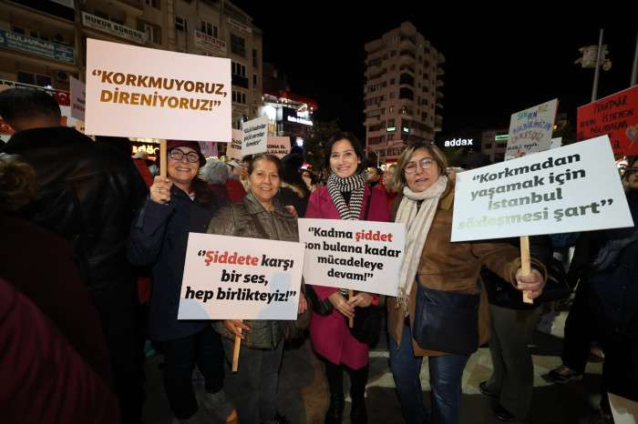 Türkiye’de her yıl 400 kadının erkekler tarafından öldürüldüğüne dikkat çeken Başkan Durbay, şiddeti önleyen yasaların acilen uygulanması gerektiğini vurgulayarak şöyle devam etti “İstanbul Sözleşmesini feshedenlerin, 6284 sayılı yasayı uygulamayanların istediklerinin ne olduğunu çok iyi biliyoruz. İstanbul Sözleşmesini feshedenlerin hepsi kadın cinayetlerinin ortağıdır. Seçilmiş bir kadın belediye başkanı olarak tüm kız kardeşlerime söz veriyorum, bu karanlık zihniyete karşı gücüm yettiğince yanınızdayım. Kadına yönelik şiddet son bulana kadar sizlerle birlikte omuz omuza mücadele etmeye devam edeceğim. Biz kadınlar, kimsenin anası, bacısı, eşi, namusu, emaneti değiliz. Bizler eşit yurttaşlarız. Namusumuzu korumak da kimsenin haddine değil. Bizler, şiddetin, sömürünün, yoksulluğun karşısında birlikte güçlüyüz. Şiddete, cinayetlere ve baskılara karşı; isyanımızla, mücadelemizle var olmaya, yaşamı ve eşitliği savunmaya devam edeceğiz. Kadın cinayetlerinde yaşamını yitiren tüm kadınları saygıyla anıyor, Şiddete karşı mücadelemizi kararlılıkla sürdüreceğimizi bir kez daha haykırıyorum. Yaşasın kadın mücadelesi.”