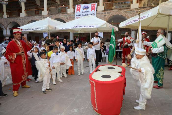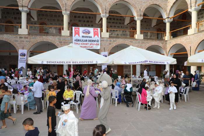 Sünnet olan çocuklar için önce konvoy oluşturuldu, şehir turu atıldı. Tarihi mekanda mevlidi Şerif okundu, dualar edildi. Şehzadeler Belediyesi Mehter Takımı, semazenler ve halkoyunları ekibi sahne aldı. Manisa Ağrılılar Yardımlaşma ve Dayanışma Derneği Başkanı Savcı Özyolcu, Ağrılılar Derneği olarak kurum ve kuruluşların destekleriyle toplu sünnet şöleni düzenlemekten dolayı çok mutlu olduklarını kaydetti, Şehzadeler Belediyesi’ne ve destek veren hayırseverlere teşekkür etti. Şehzadeler Belediye Başkanı Ömer Faruk Çelik, belediye olarak sivil toplum kuruluşlarıyla işbirliği yaparak bu tür hayır işlerine her zaman destek verdiklerini belirtti. Toplu sünnet şöleniyle çocukların mutluluklarına ortak olduklarını ifade eden Çelik, yakın zamanda başka bir dernekle de sünnet şöleni düzenlediklerini söyledi, destek olan herkese teşekkür etti. Şehzadeler Kaymakamı Cemal Hüsnü Çaykara da sünnet şölenine katkı sağlayanlara teşekkür etti. Konuşmaların ardından protokol üyeleri tarafından sünnet şölenine destek olan hayırseverlere plaket takdim edildi, çocuklara hediyeler verildi. Sünnet şölenine Şehzadeler Kaymakamı Cemal Hüsnü Çaykara, Şehzadeler Belediye Başkanı Ömer Faruk Çelik, Manisa Ağrılılar Yardımlaşma ve Dayanışma Derneği Başkanı Savcı Özyolcu ve çok sayıda davetli katıldı. Haber Merkezi