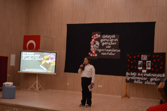 Saygı duruşu ve İstiklal Marşı'nın okunmasının ardından program Kur'an-ı Kerim tilavetiyle devam etti. Fatih Ortaokulu Müdürü Kazım Tokkaş, günün anlam ve önemine ilişkin yaptığı konuşmada, "Öğretmenlerin eğitim-öğretim hayatının başlangıcından sonuna kadar tesir etmediği hiçbir alan yoktur" dedi. Başöğretmen Mustafa Kemal Atatürk'ü ve şehit öğretmenleri minnetle andığını belirtti.