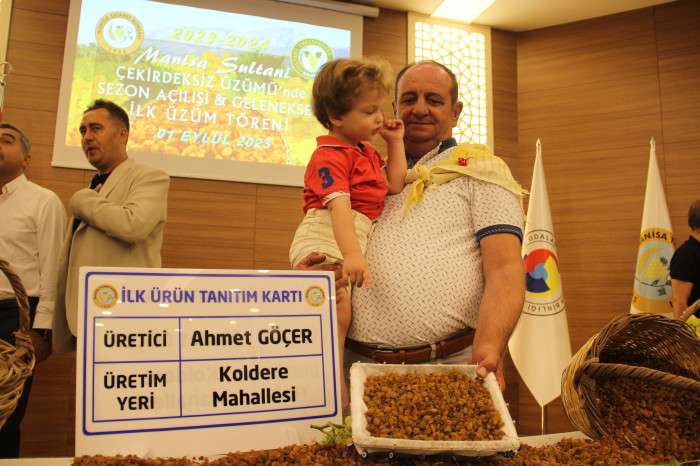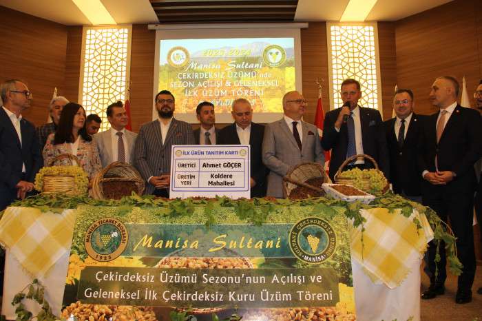 Manisa Ticaret Borsası tarafından 2023-2024 sezonunun açılışı ve sezonun ilk çekirdeksiz Sultani kuru üzümünün sembolik olarak açık artırmayla satın alınması gerçekleştirildi. İlk kuru üzümü getiren Saruhanlı ilçesinin Koldere Mahallesi'nden üzüm üreticisi Ahmet Göçer'in 50 kilogram üzümünün kilosu yapılan açık artırma usulüyle bin 250 TL'den sembolik olarak Manisa Ticaret Borsası tarafından satın alındı. Törene Manisa Vali Vekili Erhan Güney, Manisa Büyükşehir Belediye Başkanı Cengiz Ergün, AK Parti Manisa Milletvekili Tamer Akkal, CHP Manisa Milletvekili Ahmet Vehbi Bakırlıoğlu, İYİ Parti Manisa Milletvekili Şenol Sunat, ilgili kurum müdürleri, tüccarlar ve üreticiler katıldı.