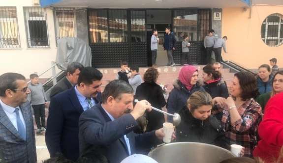 ’Beslenme dostu okul’ programı kapsamında Manisa’nın Şehzadeler ilçesindeki Gazi İlkokulundaki öğrencilere tarhana çorbası ikram edildi. Minik öğrenciler tarhana çorbalarını şifa niyetine afiyetle içti.