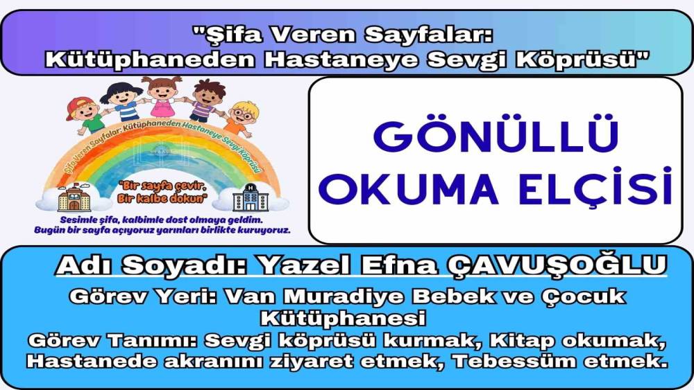 Van’ın Muradiye ilçesindeki Bebek ve Çocuk Kütüphanesi, kütüphanecilik anlayışını dört duvarın dışına taşıyan "Şifa Veren Sayfalar: Kütüphaneden Hastaneye Sevgi Köprüsü" projesini hayata geçirdi.