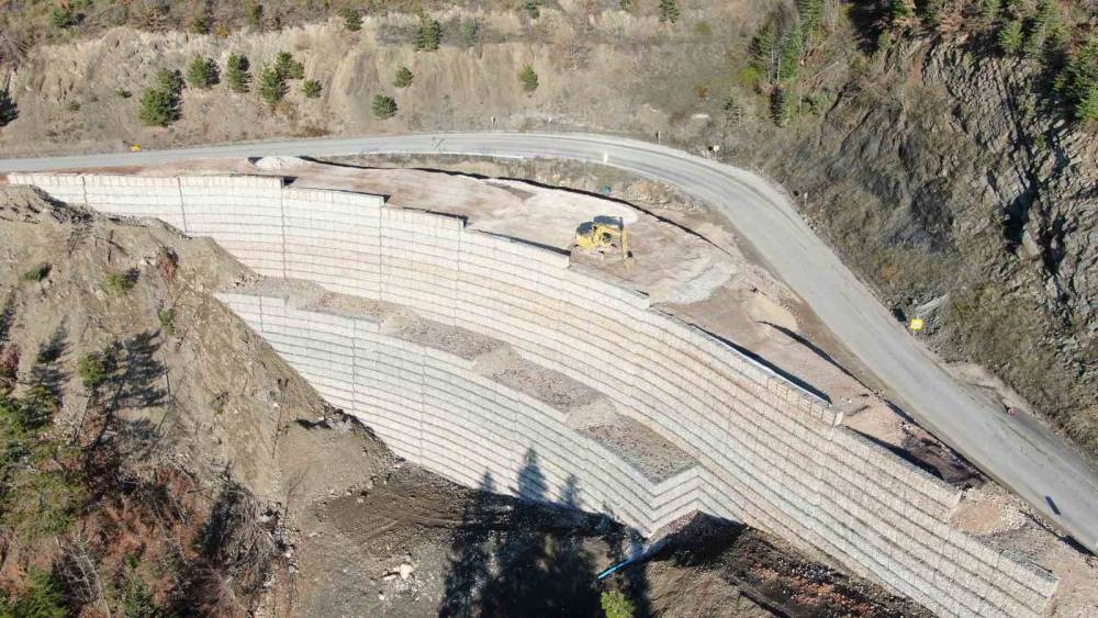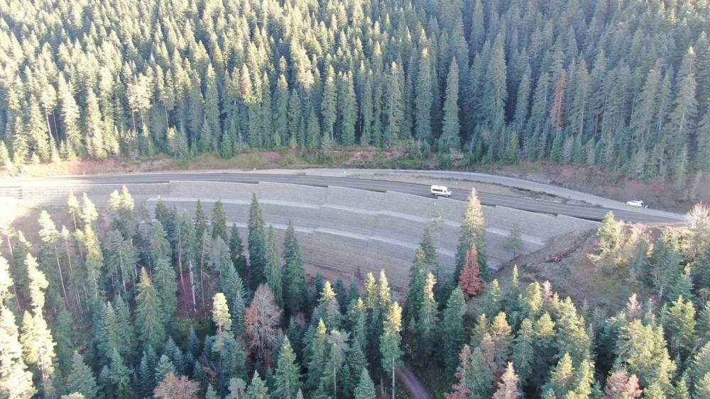 Kastamonu’nun il merkezi ile Abana, Bozkurt ve Çatalzeytin ilçeleri arasındaki ulaşımın sağlandığı 2 bin rakımlı Yaralıgöz Dağı geçidi, çelik tel ağlar ve duvarlarla güvenli hale getiriliyor.