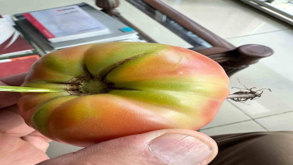 Olay, Şırnak merkezde yaşandı. Muhittin Benek isimli vatandaş, iş ortağı Şeyhmus Uslu’ya ait bahçede kahvaltı için domates toplarken sıra dışı bir durumla karşılaştı. Bahçeden topladığı bir domatesin içinden ot çıktığını fark eden Benek, bu anları cep telefonuyla kayda aldı.