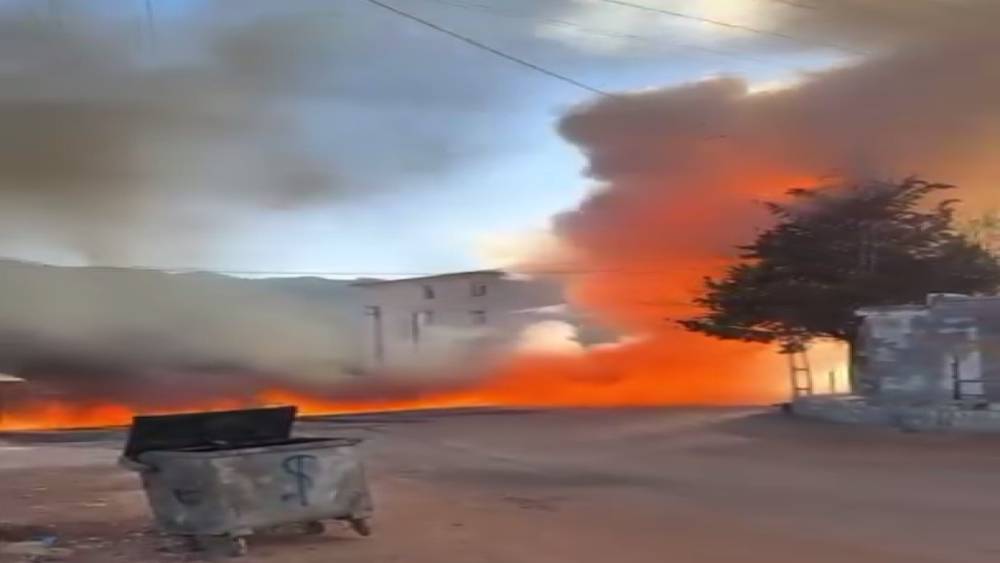 Şırnak’ta yol çalışmasında hasar gören petrol borusu alev aldı
