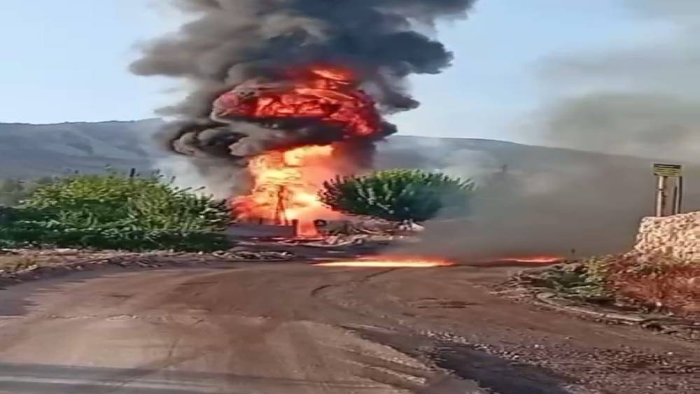 Şırnak’ın Gabar Dağı bölgesinde yol çalışması sırasında hasar gören petrol boru hattından sızan petrol, alev alarak paniğe yol açtı.
