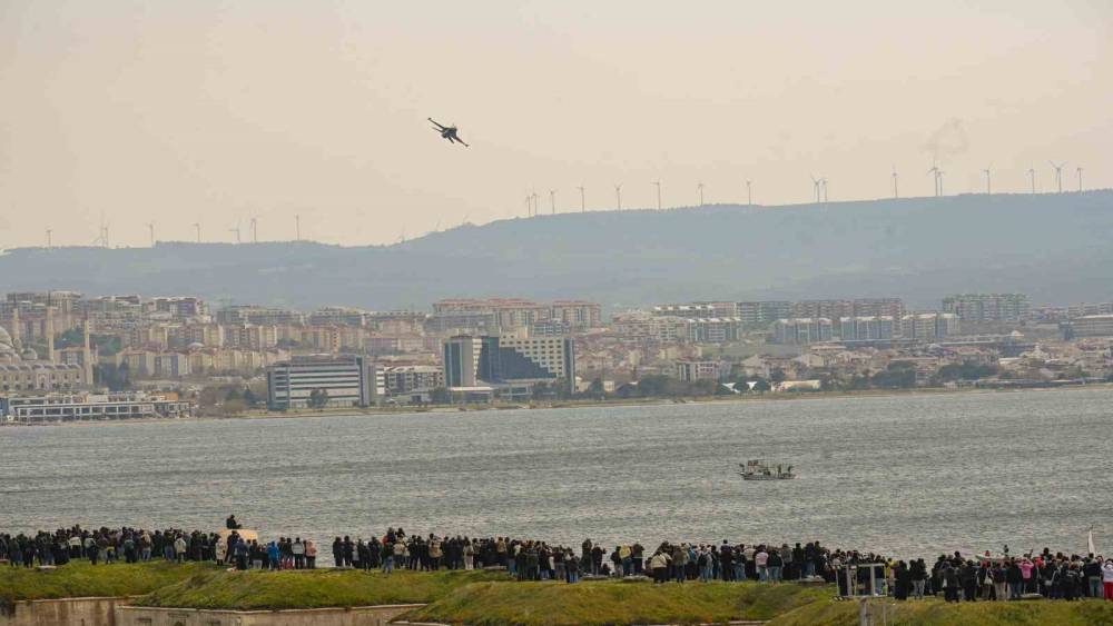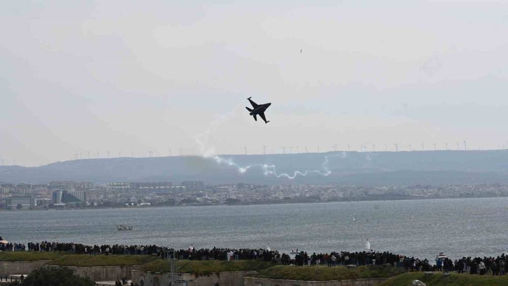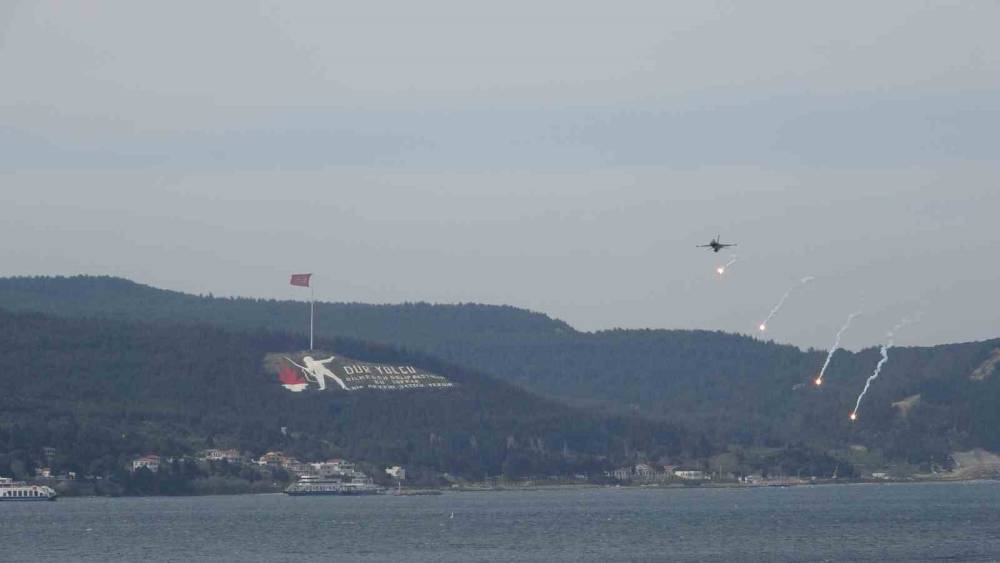 18 Mart Çanakkale Deniz Zaferi’nin 111’nci yıl dönümünde Hamidiye Tabyası önünde gerçekleştirilen gösteri uçuşunu çok sayıda vatandaş takip etti.