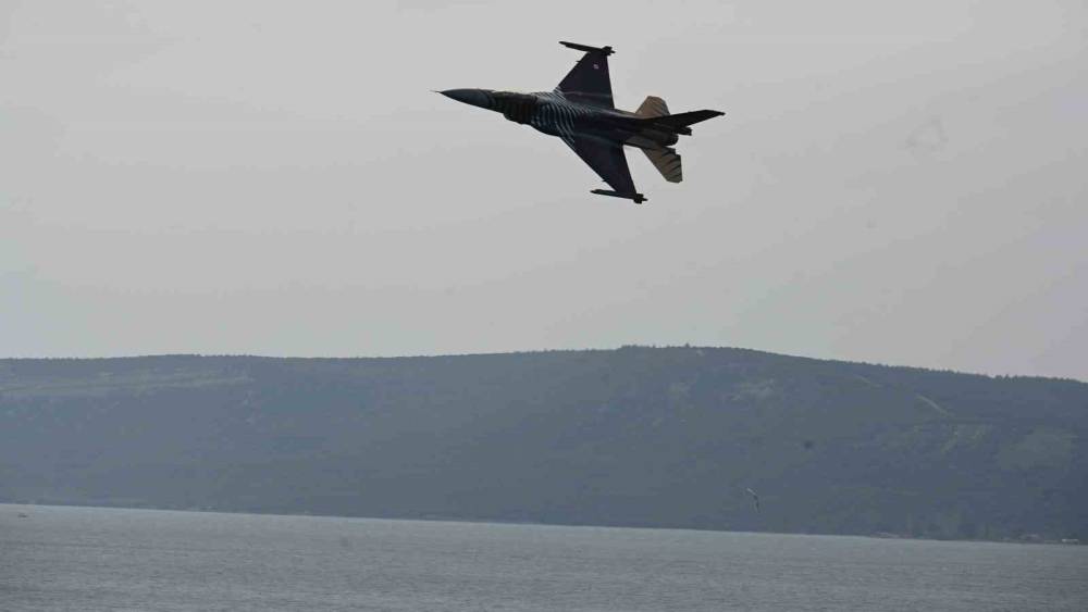10 dakika süren gösteride, F-16 pilotlarının alçak uçuşu, izleyenlere heyecan dolu anlar yaşatırken, nefesleri kesti.
