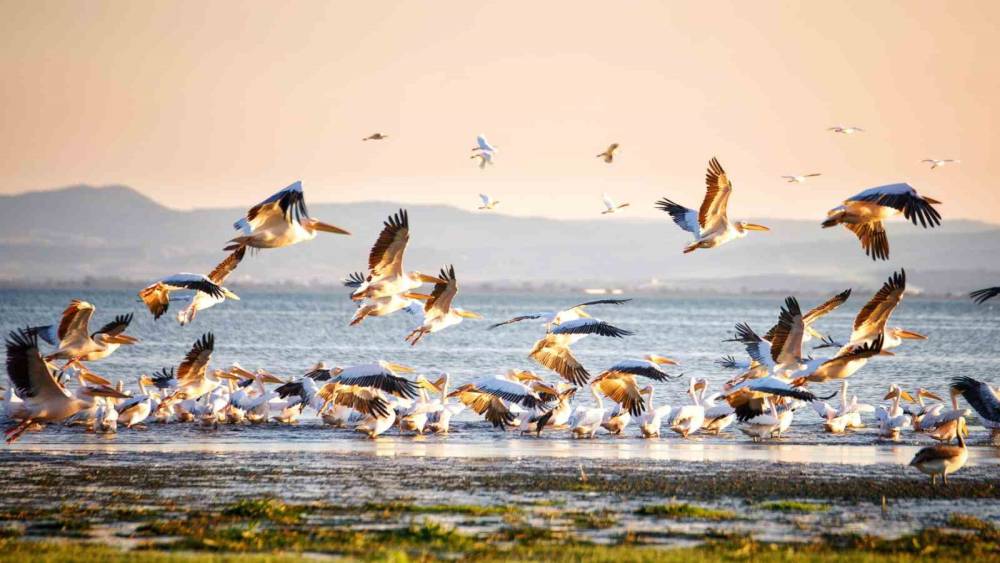 Balıkesir’deki Manyas Kuş Cenneti, sonbahar aylarında pelikanlar ve flamingolarla adeta bir doğa şölenine sahne oluyor.
