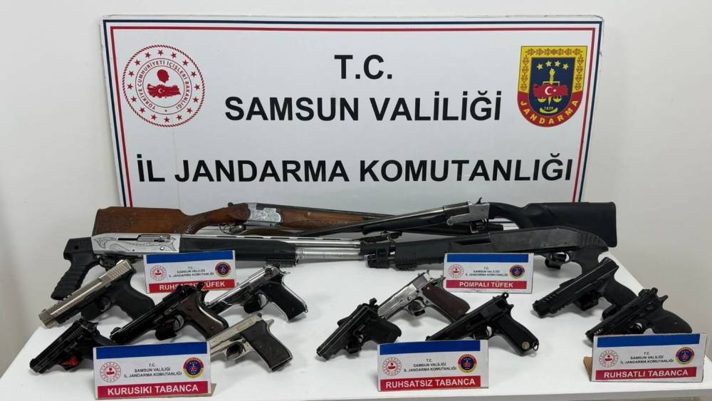 Edinilen bilgiye göre, Samsun İl Jandarma Komutanlığı ekipleri tarafından, 6 şahsın sosyal medyada yaptıkları paylaşımda silahla havaya ateş ederek genel güvenliği tehlikeye attığı tespit edildi. Jandarma ekipleri tarafından şahısların ikametlerinde yapılan aramalarda 5 adet kuru sıkı tabanca, 3 adet ruhsatsız tabanca, 2 adet ruhsatlı tabanca, 1 adet ruhsatlı tüfek ve 3 adet ruhsatsız tüfek ele geçirildi.
