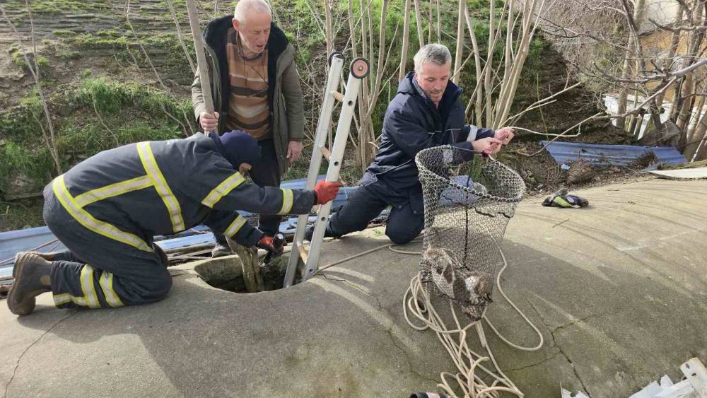 Edirne’de kullanılmayan bir su deposuna düşen yavru köpek, çevredeki vatandaşların ihbarı üzerine kurtarıldı.