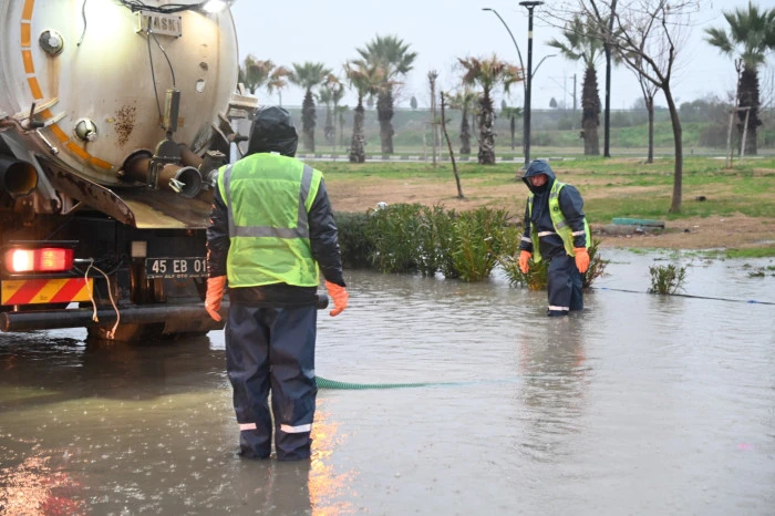 Yoğun yağışa karşı vatandaşları uyaran Manisa Büyükşehir Belediyesi, herhangi bir mağduriyet yaşanmaması için tüm ekipleriyle sahada çalışma yaptı.
