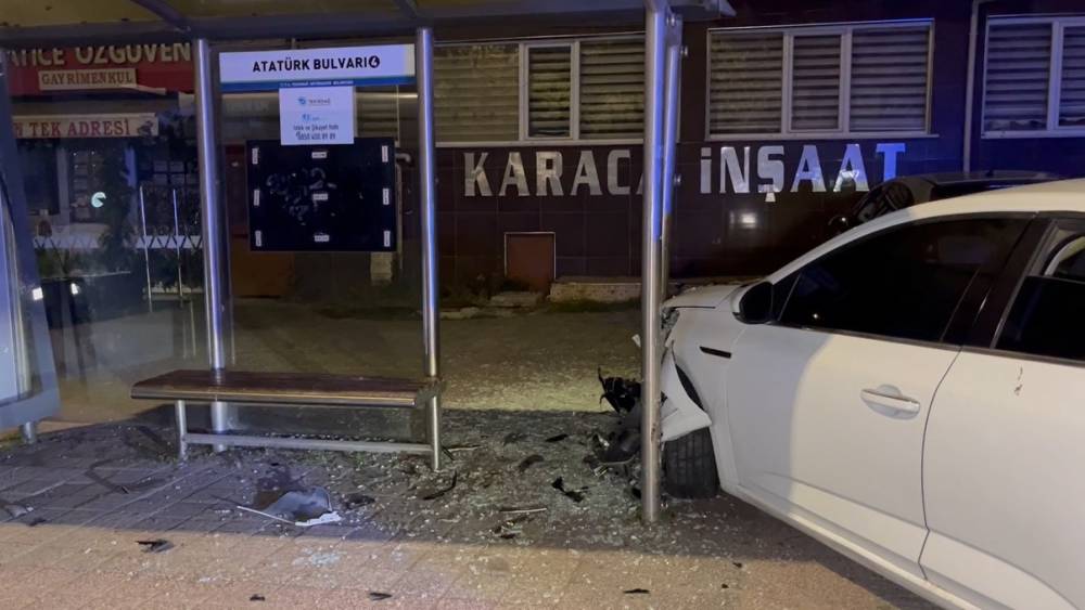 Tekirdağ Çorlu’da polisin ‘dur’ ikazına uymayan alkollü sürücünün kullandığı otomobil, sürücüsünün direksiyon hakimiyetini kaybetmesi sonucu yolcu durağına daldı.