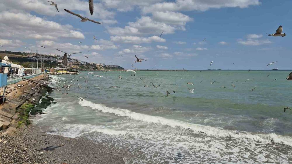 Zaman zaman hızı saatte 40 kilometreye ulaşan poyraz nedeniyle yerli ve yabancı bandıralı 8 şilep ile tanker, Tekirdağ açıklarında demirleyerek beklemek zorunda kaldı. Kıyıda etkili olan dalgalar, sahile yosun ve çeşitli atıkları sürüklerken, çok sayıda martı da dalgalar arasında kıyıda balık avlama yarışına girdi.