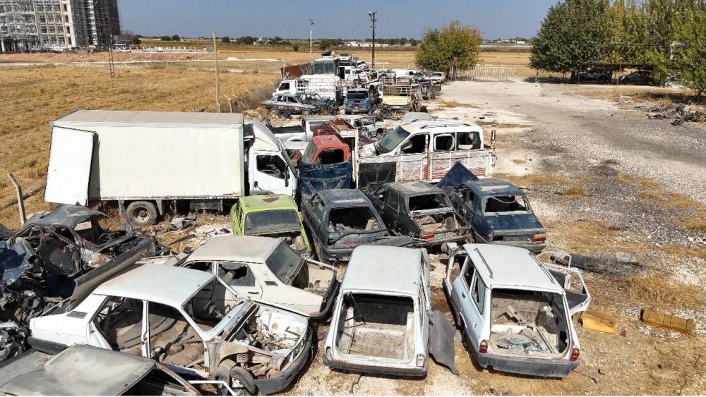 Şanlıurfa’nın Suruç ilçesinde işletmecisinin yaklaşık 3 yıl önce terk ettiği yediemin parkındaki araçların parçaları yağmalandı.
