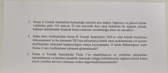 Daha önce özelleştirilen Soma B Termik Santrali’nde yaşanan sorunları da hatırlatan Sunat, söz konusu santralin Türkiye Kömür İşletmeleri’ne (TKİ) olan kömür borçlarını ödeyememesi nedeniyle TKİ’nin milyarlarca liralık zarar açıkladığını anımsattı. Bu tabloya rağmen Soma A Termik Santrali için benzer bir özelleştirme sürecine girilmesinin kamuoyunda ciddi kaygılar yarattığını vurguladı.