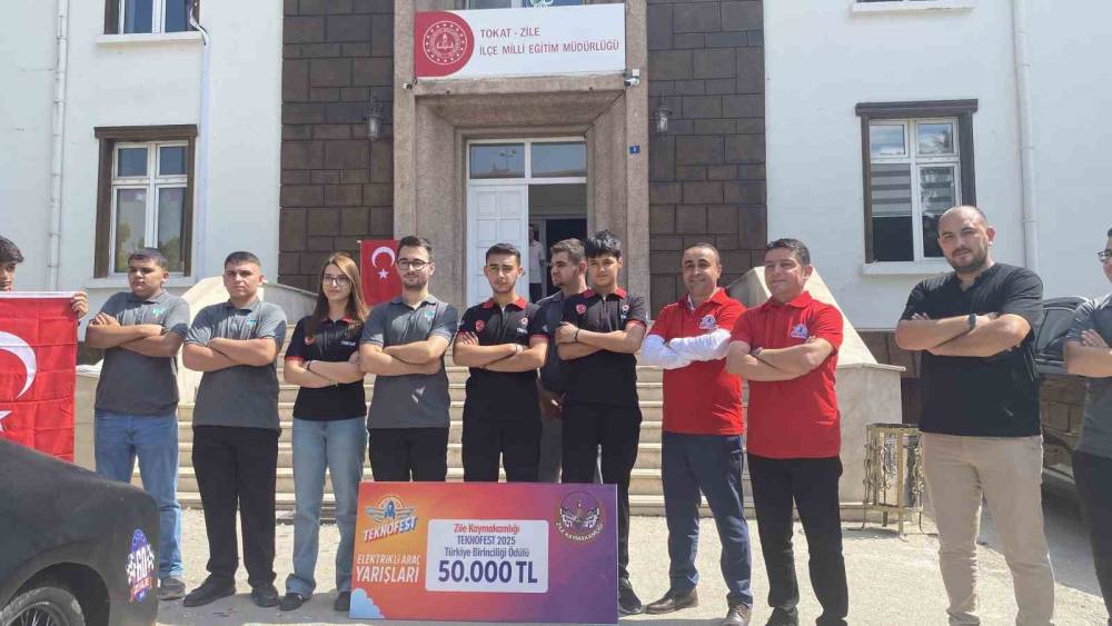 Zile ilçesinden katıldıkları Teknofest 2025 Elektrikli Araç Yarışları’nda büyük bir başarıya imza atan "Voltürk" takımı, ilçelerine çifte kupa ile döndü. Geliştirdikleri elektrikli araçla hem Türkiye birinciliği hem de performans yarışmasında Türkiye üçüncülüğü elde eden takımın başarısı, ilçe halkını gururlandırdı. Zile Mesleki Eğitim Merkezi bünyesinde kurulan Voltürk takımı, geçtiğimiz yıl da Türkiye birincisi oldu.