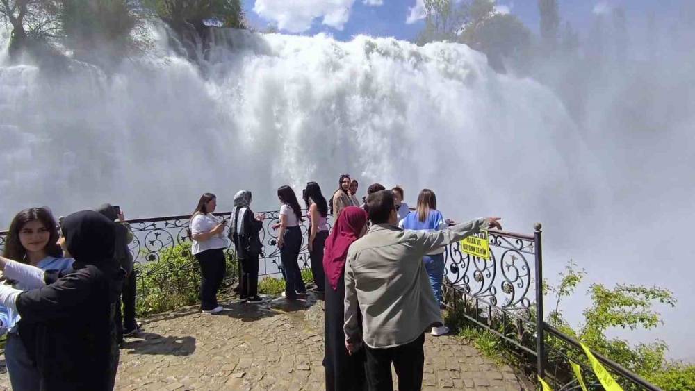Tortum Şelalesi coştu, ziyaretçi akınına uğradı