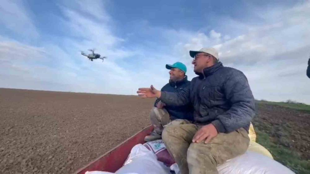 Edirne’nin Meriç ilçesine bağlı Küplü beldesinde arazide ekim yapan çiftçilerin dron ile yaşadıkları ilginç anlar kameralara yansıdı.
