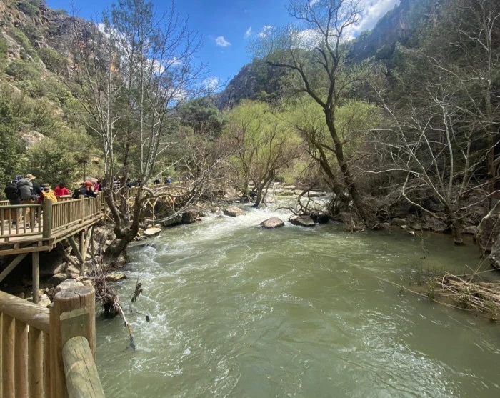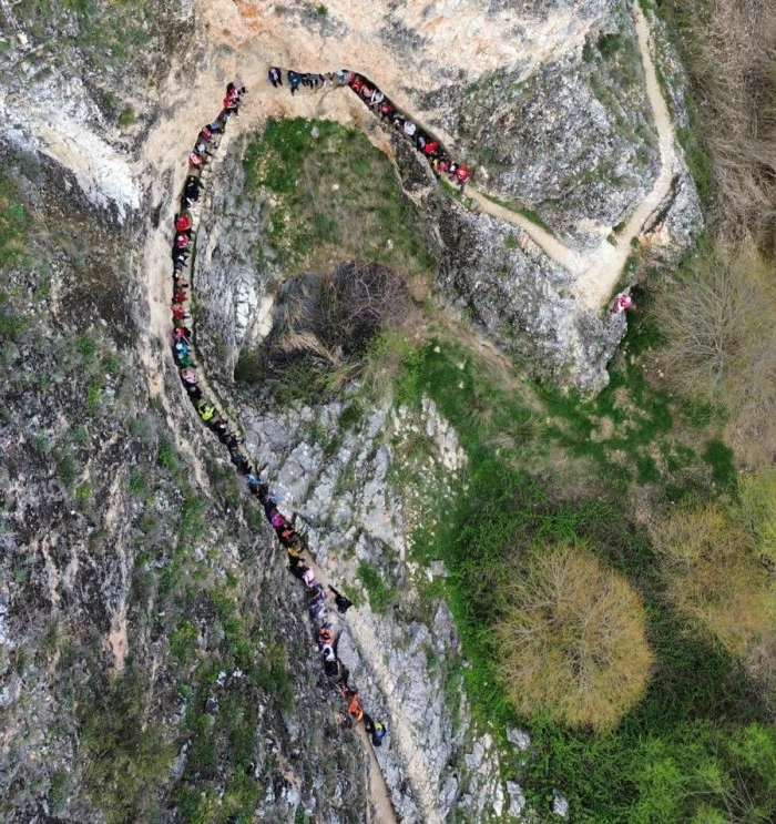 Yürüyüşün başlangıç noktası, kanyonu kuşbakışı izleme imkanı sunan ve adrenalin dolu anlara sahne olan Ulubey Cam Teras oldu. Eşsiz manzaranın tadını çıkaran TURBELDAK üyeleri, daha sonra Avgan Beldesi’nden başlayarak Bakırali Kamp Alanı’na ulaştı. Parkurun en dikkat çeken duraklarından biri olan ve erken Hristiyanlık döneminin gizemli yerleşimlerinden biri kabul edilen Pepouza Antik Kenti, dağcılara adeta tarih içinde bir yolculuk yaşattı.