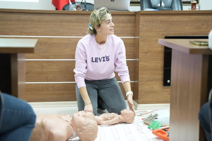 Turgutlu Belediyesi, personeline yönelik hizmet içi eğitim çalışmalarını sürdürüyor. Bu kapsamda belediye çalışanlarına, olası acil durumlarda doğru müdahale yöntemlerini öğretmek amacıyla ilk yardım eğitimi verildi. Eğitimde hem teorik bilgiler paylaşıldı hem de uygulamalı olarak temel ilk yardım müdahaleleri gösterildi.