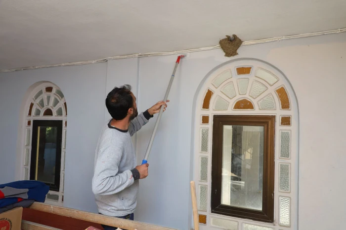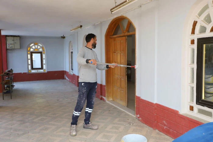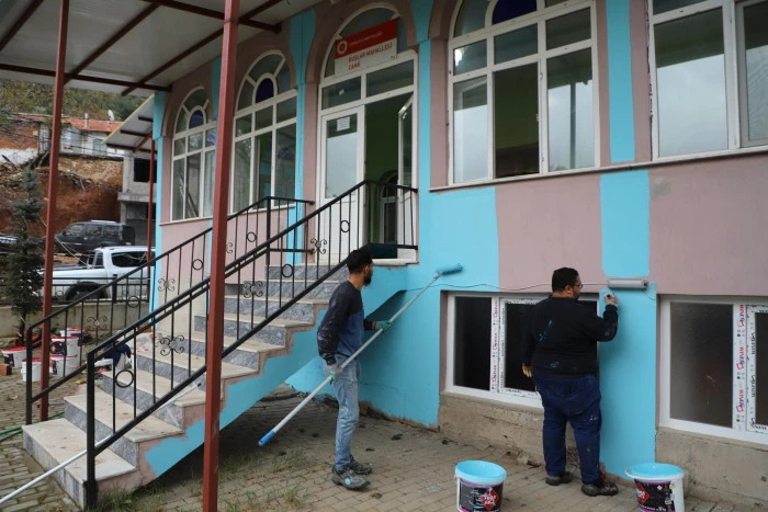 Ekipler, Gökgedik Mahallesi Camiinde boyama çalışmalarını tamamlarken,