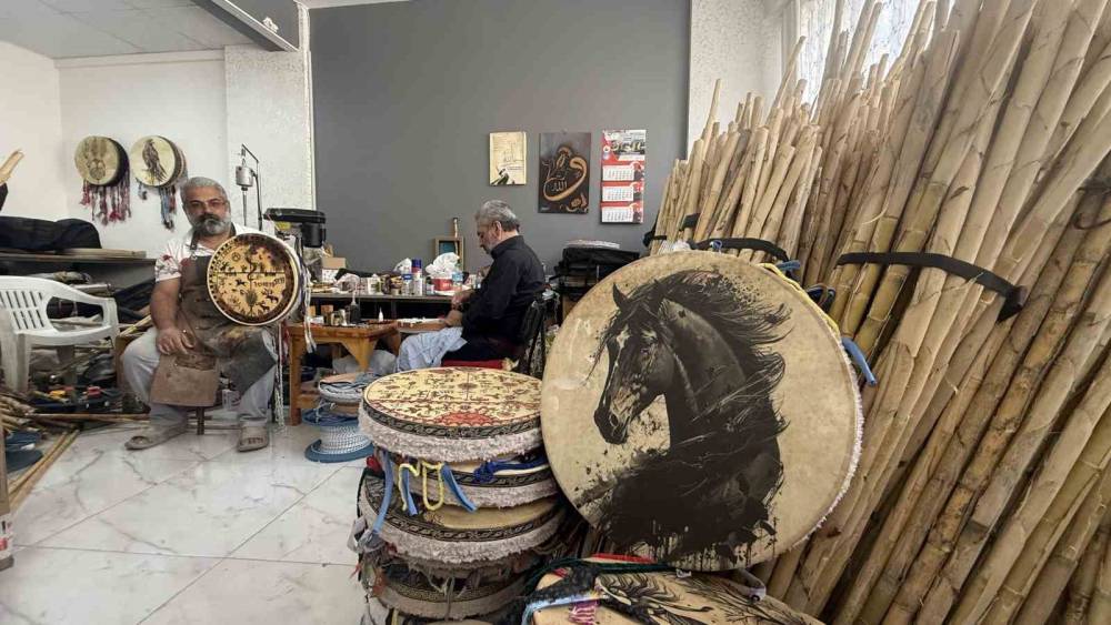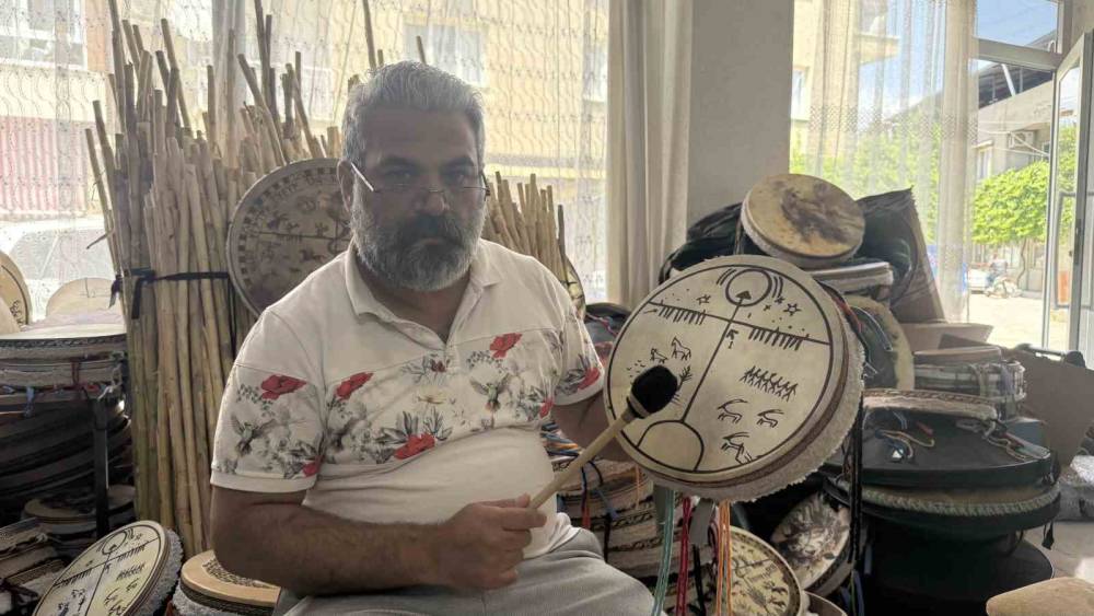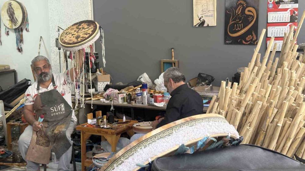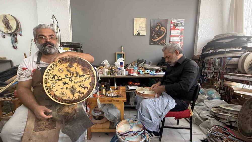 Subaşı Mahallesi'ndeki atölyesinde üretim yapan Cenk Toplar'ın (43), geleneksel el sanatları ile modern tasarımı birleştirdiği özel şaman davulu, hem yurt içinde hem de yurt dışında özellikle meditasyon, müzik ve terapi alanlarında büyük ilgi görüyor.