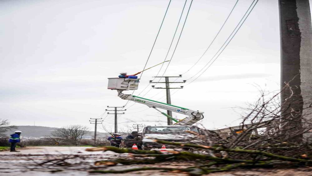 Meteoroloji Genel Müdürlüğü’nün uyarılarının ardından Marmara Bölgesi genelinde etkili olan olumsuz hava şartları, günlük yaşamı olumsuz yönde etkiledi. Kuvvetli rüzgâr ve sağanak yağış, sahada görev yapan enerji ekiplerine zor anlar yaşattı.Bursa’da gece saatlerinde başlayan ve kent genelinde etkisini artıran kuvvetli rüzgâr sonrası UEDAŞ, elektrik şebekesinin sürekliliğini sağlamak amacıyla saha ve dijital sistemler üzerinden 7-24 izleme, kumanda ve kontrol faaliyetlerini aralıksız sürdürüyor. Muhtemel arızalara en hızlı şekilde müdahale edebilmek için ekipler sahada yoğun mesai yapıyor.Olumsuz hava şartlarına karşı tüm operasyonel süreçlerini önceden planlayan UEDAŞ, Bursa’da 457 kişilik saha ekibi ve geniş araç filosuyla görev başında bulunuyor. Vatandaşlara kesintisiz ve güvenli enerji sağlamak için çalışmalarını sürdüren UEDAŞ, gelişmeleri anlık olarak takip etmeye devam ediyor.