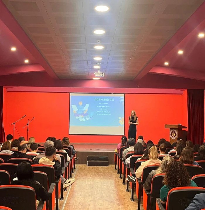 Etkinliğin ikinci oturumu Ülkem Koleji Spil Konferans Salonunda devam etti. 1. sınıf İngilizce öğretmenleri Yağmur Pamuk ve Sevgi Doğan tarafından yürütülen İngilizce dersi simülasyonuna katılan veliler, dersin işleniş sürecini yakından gözlemlediler. Ardından Psikolojik Danışman Melek Daşdelen, “6-7 Yaş Gelişim Dönemi Özellikleri” başlığıyla çocukların gelişim özelliklerini ve bu süreçte aile iletişiminin önemini paylaştı. Veliler ayrıca “Ödevler” başlığı altında ödevin gerekliliği, sorumluluk kazandırma yöntemleri ve ebeveyn desteğinin doğru düzeyi hakkında bilgilendirildi. Program, “Armut Dibine Düşer” sunumuyla sona erdi.