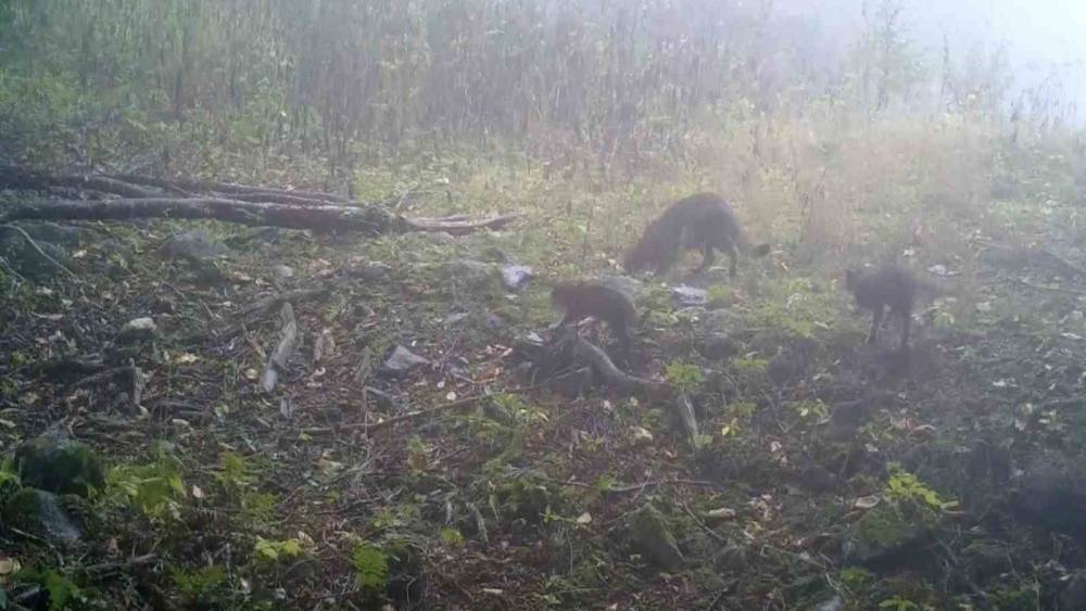 Uludağ’da sisler arasında anne yaban kedisi ve yavruları görüntülendi